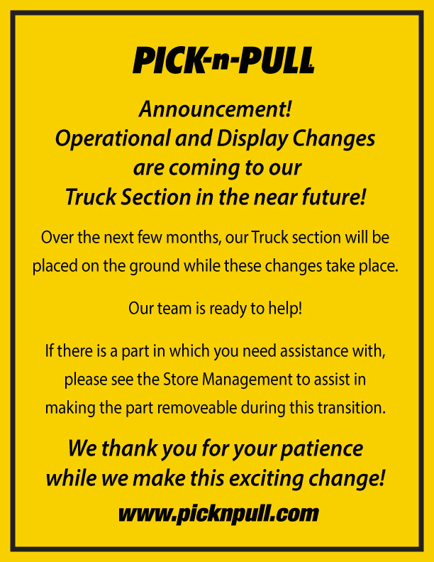 Pick-n-Pull Find used auto parts pricing for your local Pick-n-Pull. We offer OEM used car parts at competitive prices. Pick N Pull Near Me [Locator Map + Guide + FAQ] Jan 03, 2022 · Pick-n-Pull Coupons, Discounts, Rewards and Events. One of the best parts about this brand is that they operate like any kind of franchise. They have extra deals like coupons, discounts, award programs, and special events. All of these things are design to help save you more money on used auto parts.