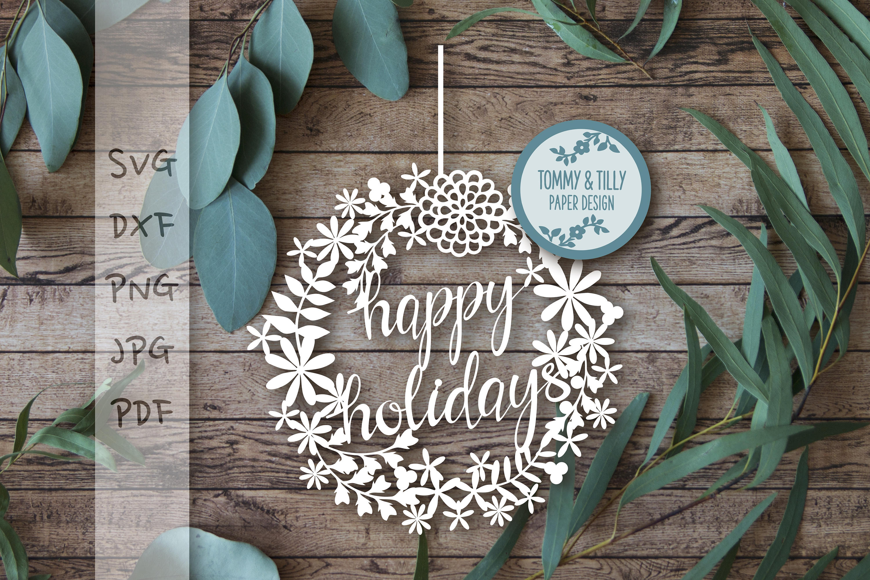 Happy Holidays Design SVG DXF PDF Jpg Png - Papercutting / Vinyl Template to cut yourself (Commercial Use)