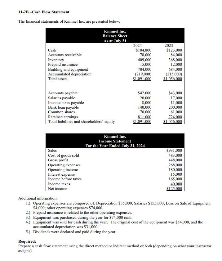Solved 11-2B-Cash Flow Statement The financial statements of ...